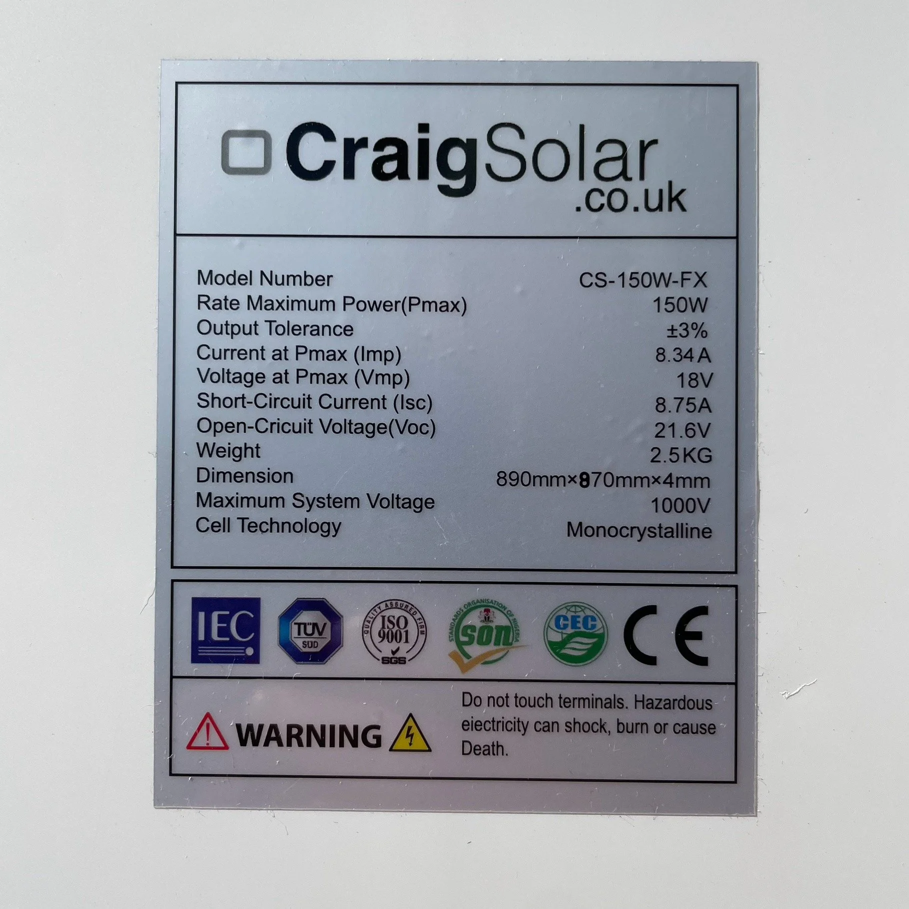 Short Circuit Current (Isc) 8.75A